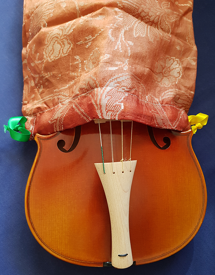 Saraband Music is making protective silk bags for your stringed instrument (modern or baroque). There are several varieties available. Silk or other very tightly woven fabrics are ideal for protecting your violin against changes in humidity, as well as forming a very lightweight protection in your violin case if anything comes loose while travelling. It is less likely to be scratched. All bags come with a drawstring ribbon in one of a variety of colours.